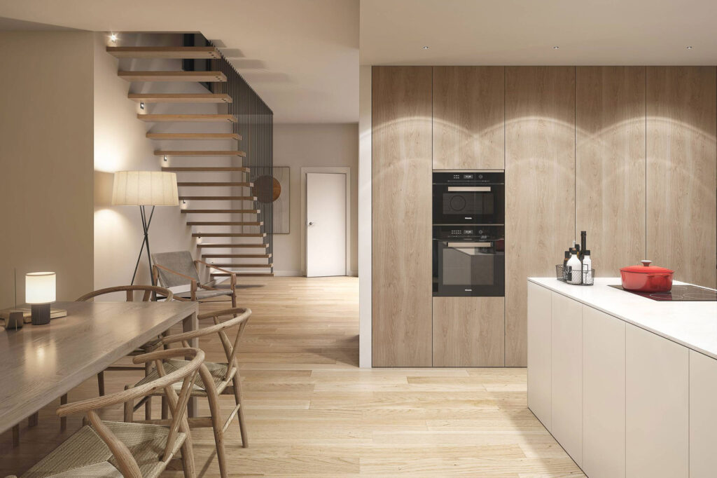 Amb 266 m2 distribuïts en dues plantes, aquesta casa aparella- da ofereix tot el que una família pot desitjar: espai, llum natural, disseny contemporani i una gran eficiència energètica.